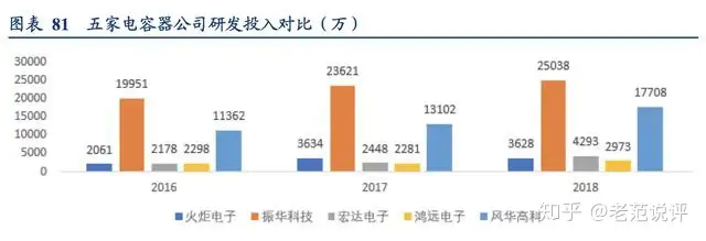对比分析来看,国内企业要想缩小与国际巨头的差距,持续的重视研发投入,不断的扩张产品品类以及应用领域是发展壮大的必由之路。从发展路径来看,从单一电容器向多品类电容器,进而从电容器向电阻电容等其他被动元件,再向更广范围内的元器件拓展。从应用领域来看,对于振华科技、宏达电子、火炬电子和鸿远电子,需要从军工领域逐步向高端工业民用领域,进而向更广范围内的通用民用领域拓展;对于风华高科等企业,则需要从低端民用向中高端民用以及军工领域拓展。